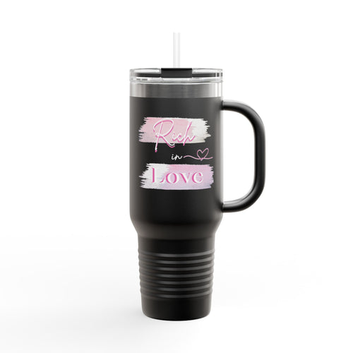 40oz Insulated Travel Mug — "Rich in Love" Pink Brush Stroke Design